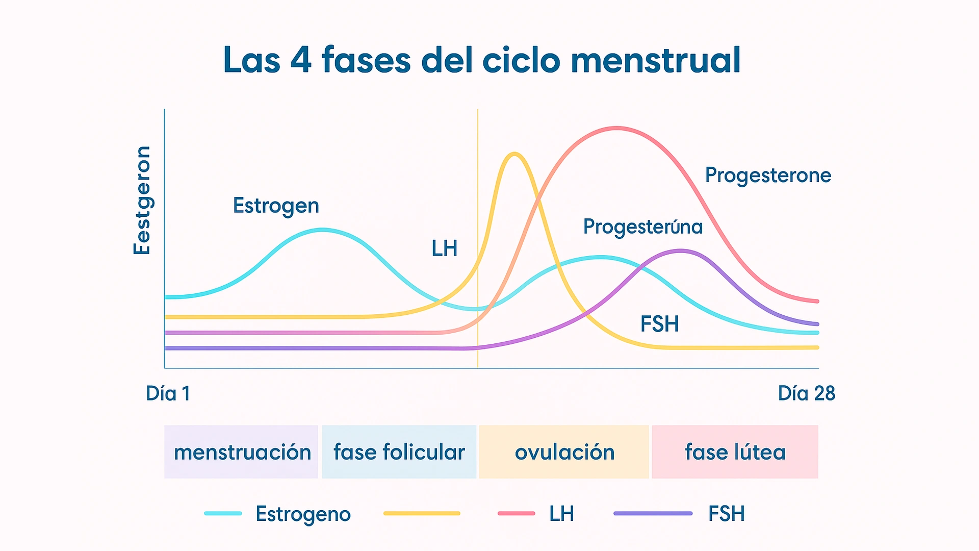Al inicio del ciclo menstrual, las hormonas sexuales se encuentran en estado basal. A partir de este momento, será posible diferenciar entre cinco periodos menstruales dentro de un ciclo en función de los niveles hormonales y del proceso que ocurra: